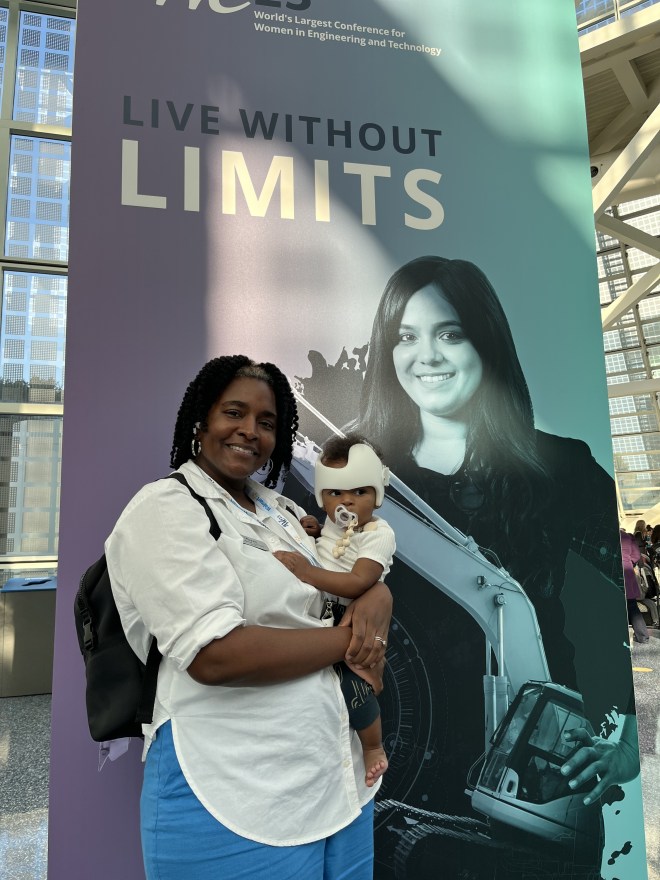 Don’t be afraid to ask for help. One thing I have not mentioned up until this point is that I have the most supportive mother and she picks up a lot of the slack. At the beginning, it was hard to be away from Mansa especially for over night trips. I had an experiment at CHESS when he was around three months old and it was torture. So the first conference I went to after ML, I had my mom come along so that I did not have to be away from him for an entire week. Recently, my son and I traveled to the SWE conference in LA together and it was empowering to be around other working moms (FYI, SWE conference provides daycare service at a subsidized rate). The same way you have to set new boundaries with your research group, you have to do this with other students as well. One thing that I changed was office hours (OH). I asked students to email me if they were coming to OH and to inform me on what they would like to discuss before hand. This gave me time to prepare and be more efficient.